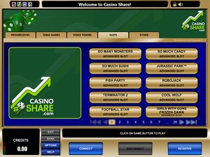 The software provider for Casino Share is Microgaming, a leading name in online casino gaming. They are known for their amazing games with spectacular graphics, sleek gameplay and ample game variety. The graphics are vibrant and clear. The sound effects and the game speed can be adjusted to suit the player.